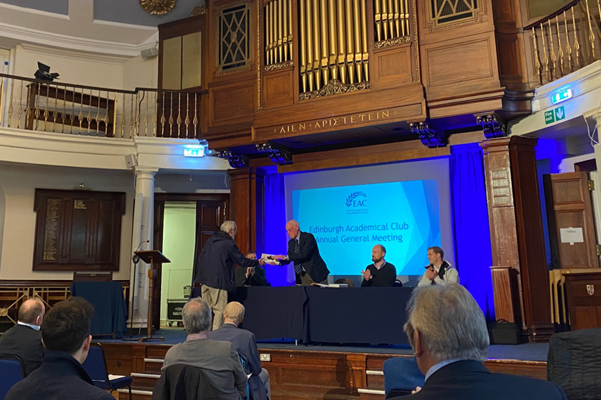 On Monday 4 October, at the Edinburgh Academical Club’s Annual General Meeting, we were proud to present two new awards to Academicals for their work and commitment to the Club. The two awards, which have come about after a suggestion from our 2020/21 Alumni Relations Ephor Harry O’Connor (EA 2013-21), are the Academical of the Year Award and the Bruce Stenhouse Award.