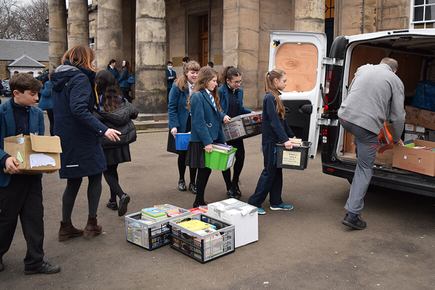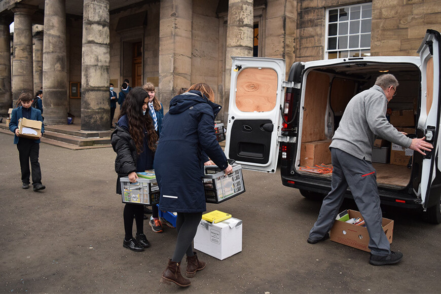 The response was incredible! Miss Murray donated textbooks and novels from the English Department. Pupils from every year group brought in books from home and left them at collection points across the school. After weeks of collections, we accumulated over 40 boxes! Mr Cunningham arranged for pick up from the Junior School Library and by Tuesday, we were ready to give over 450kg of books to Raymond from Books Abroad.