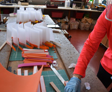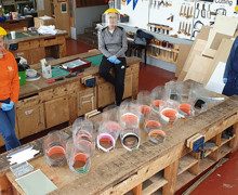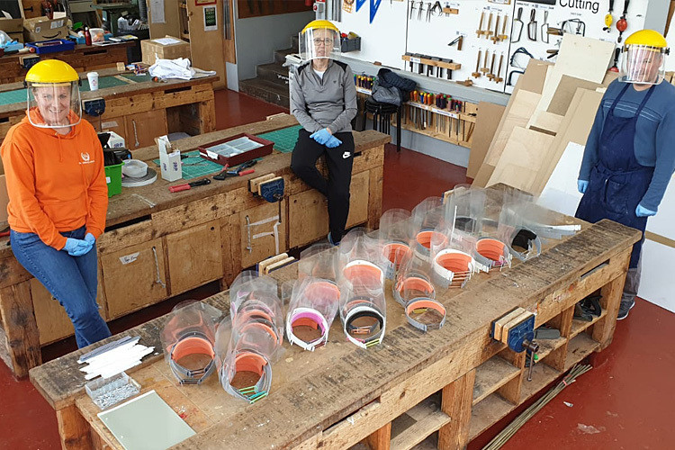 After keyworker pupils go home, three healthy staff members observe social distancing and individually assemble the laser-cut visors while gloved and masked. They produce an average of 40 per day.